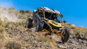 As experienced and reported by Yahoo Lifestyle in the article “First Drive: The Can-AM Maverick R UTV Is Too Fast and Ferocious for Its Own Good“, the Can-Am Maverick R proves its mettle in a thrilling Nevada desert adventure. Reaching an impressive 100 mph, the Maverick R’s radical redesign conceals its race-ready capabilities, featuring a