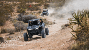 On a clear windy night, 22 miles south of Ridgecrest, California, amidst the Spangler Hills, 55 utility terrain vehicles (UTVs) lined up to run a 25-mile-long race in the Mojave Desert. These specially designed vehicles are also known as “SXS”, or side by sides, because the driver and co-driver sit side by side to manage
