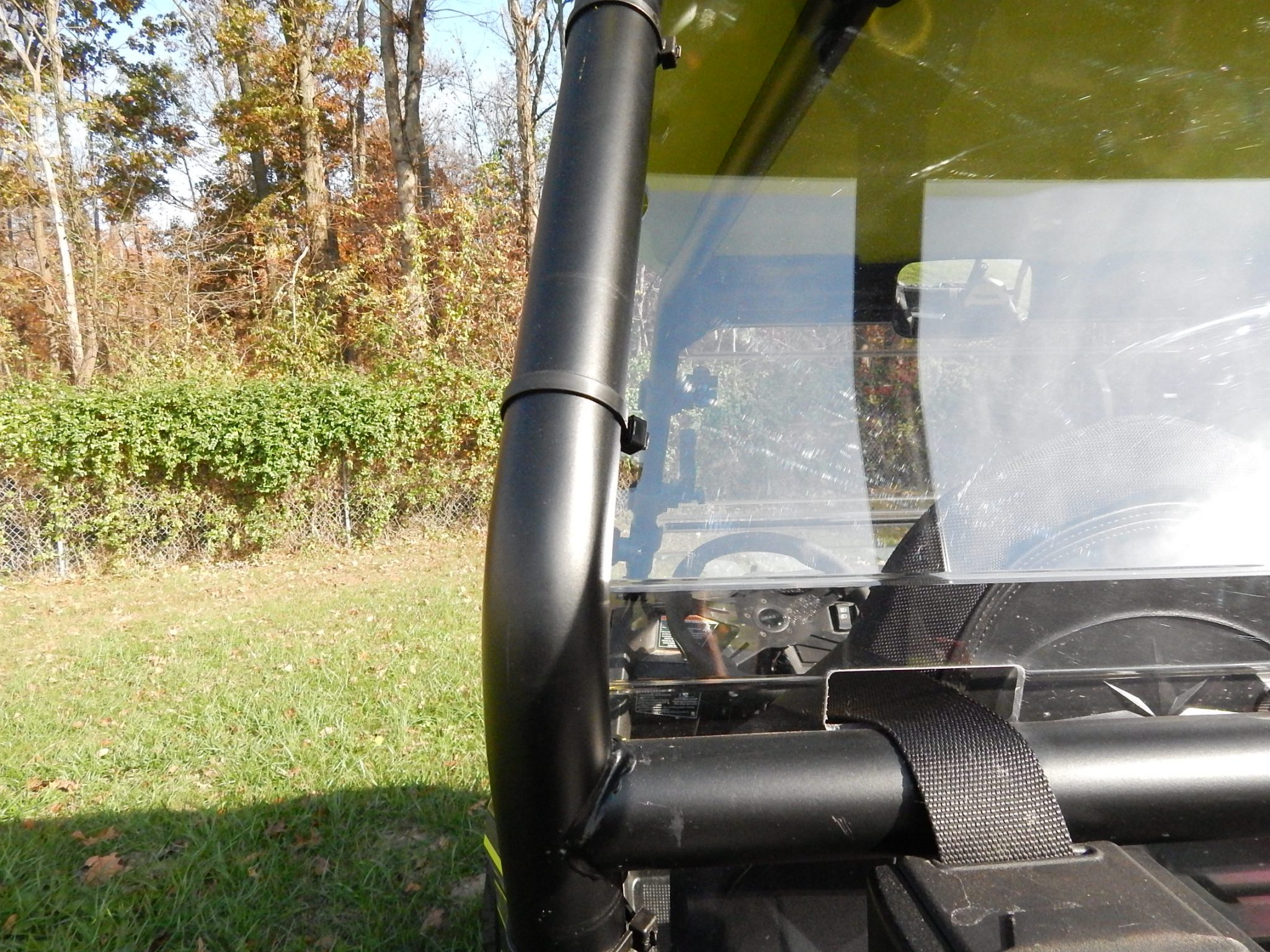 This window will effectively reduce the amount of dust and debris that enters your cabin. It is made from 3/16 clear polycarbonate for extreme durability. Installs in minutes with heavy duty, UV Resistant cable ties. No drilling or mods to your machine. The contact surface between the cage and window is gasketed to prevent rattling and wear marks on paint.