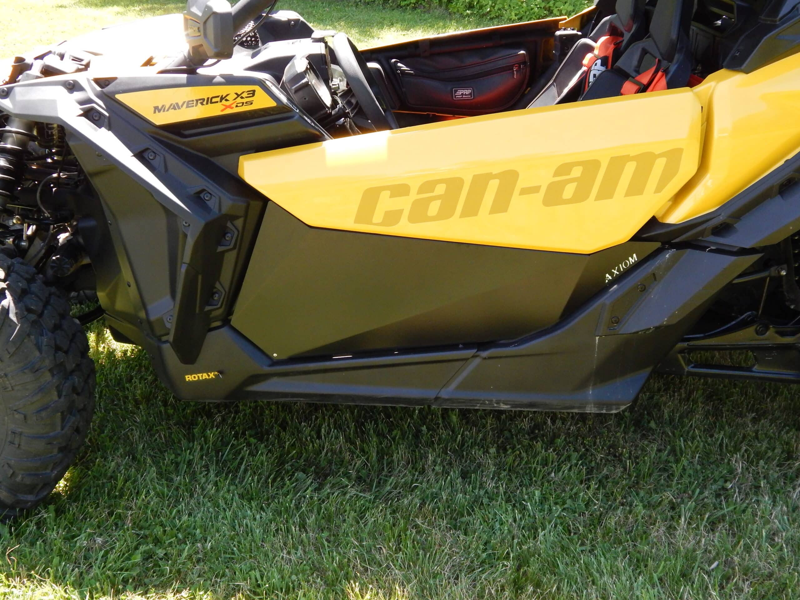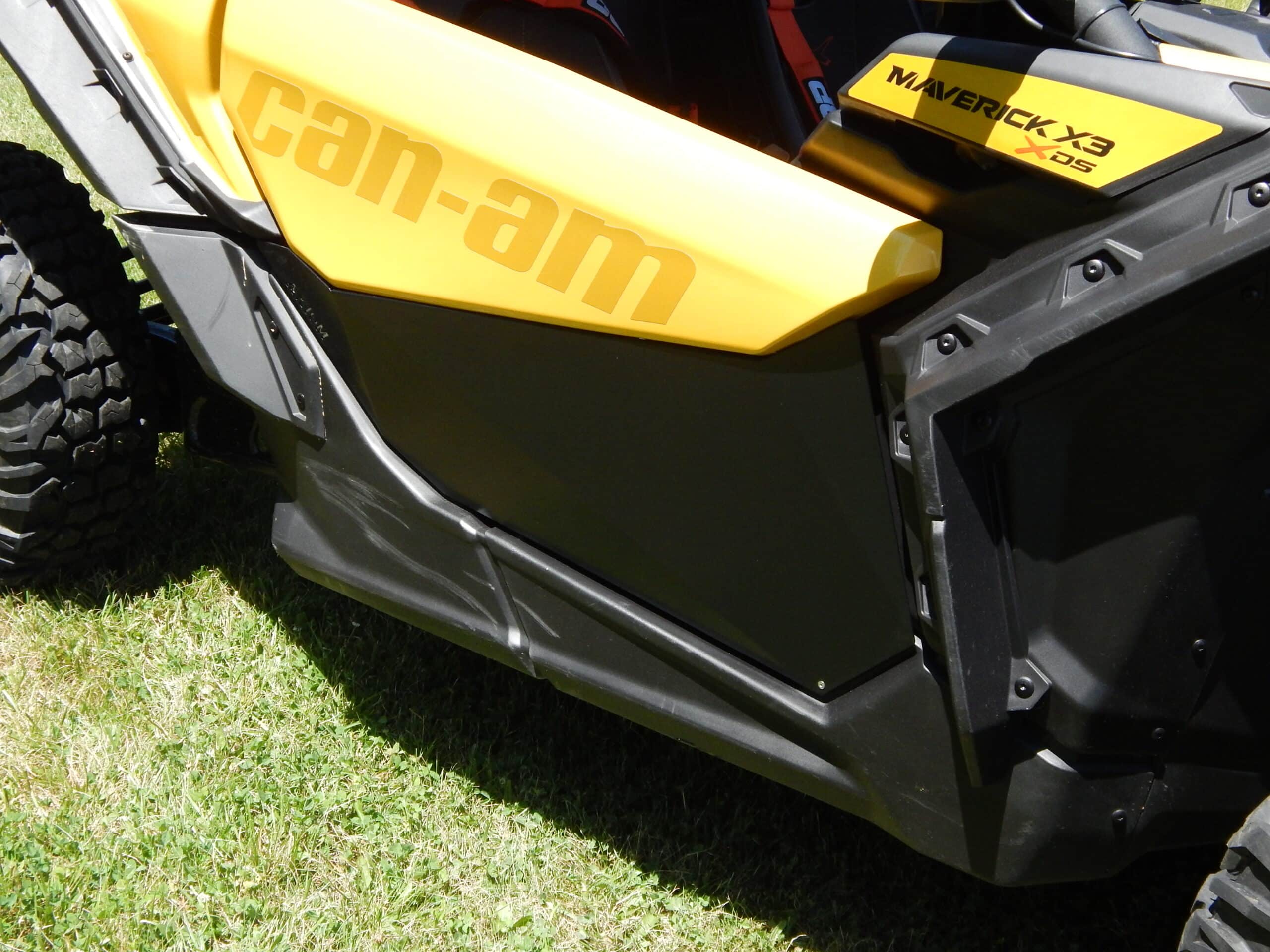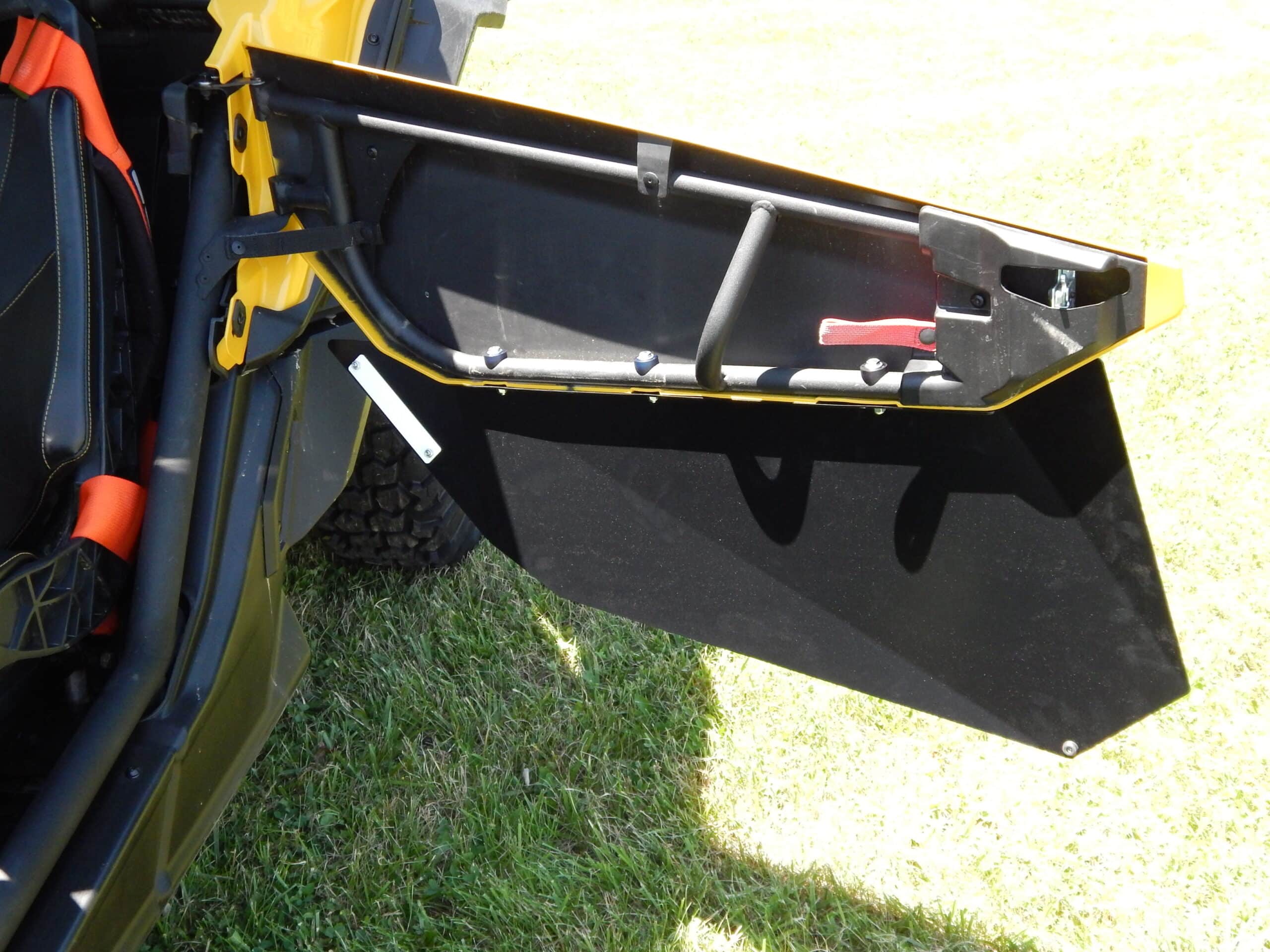 Enhance the style of your X3 and provide riders with greater comfort and safety by installing a set of Aluminum Lower Door Inserts. These doors attach quickly and securely to your stock door with no drilling or mods to your vehicle. Made from .090 inch Aluminum these doors are durable and light weight. The rubber door stop eliminates rattling. Doors are powder coated Satin Black.  All hardware and installation instructions are included.