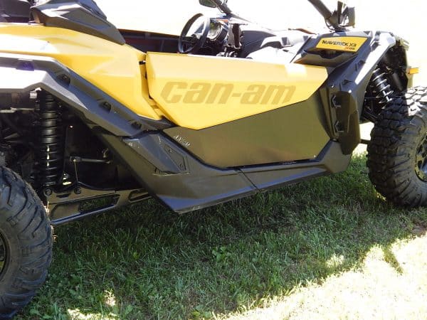 Enhance the style of your X3 and provide riders with greater comfort and safety by installing a set of Aluminum Lower Door Inserts. These doors attach quickly and securely to your stock door with no drilling or mods to your vehicle. Made from .090 inch Aluminum these doors are durable and light weight. The rubber door stop eliminates rattling. Doors are powder coated Satin Black.  All hardware and installation instructions are included.