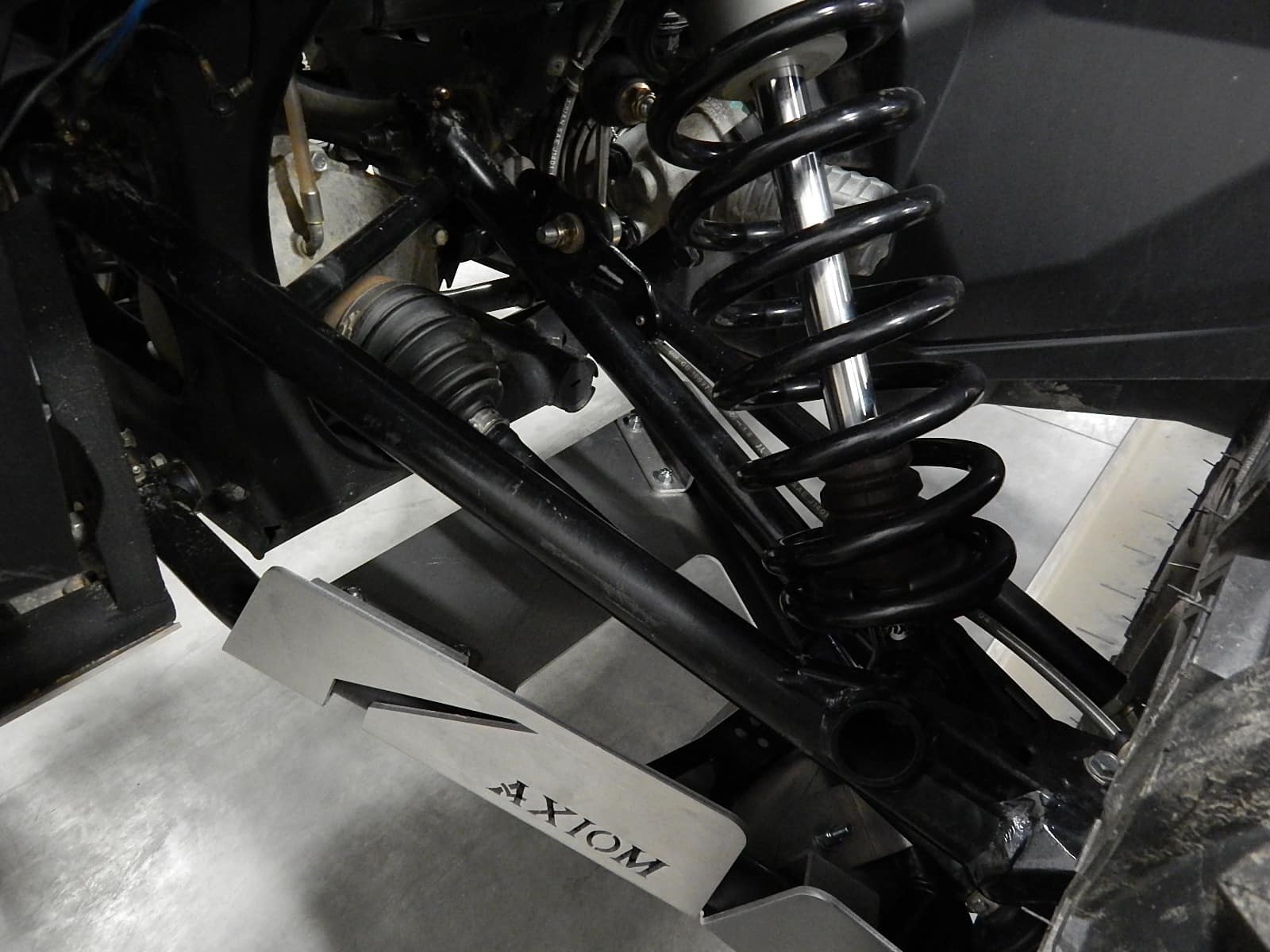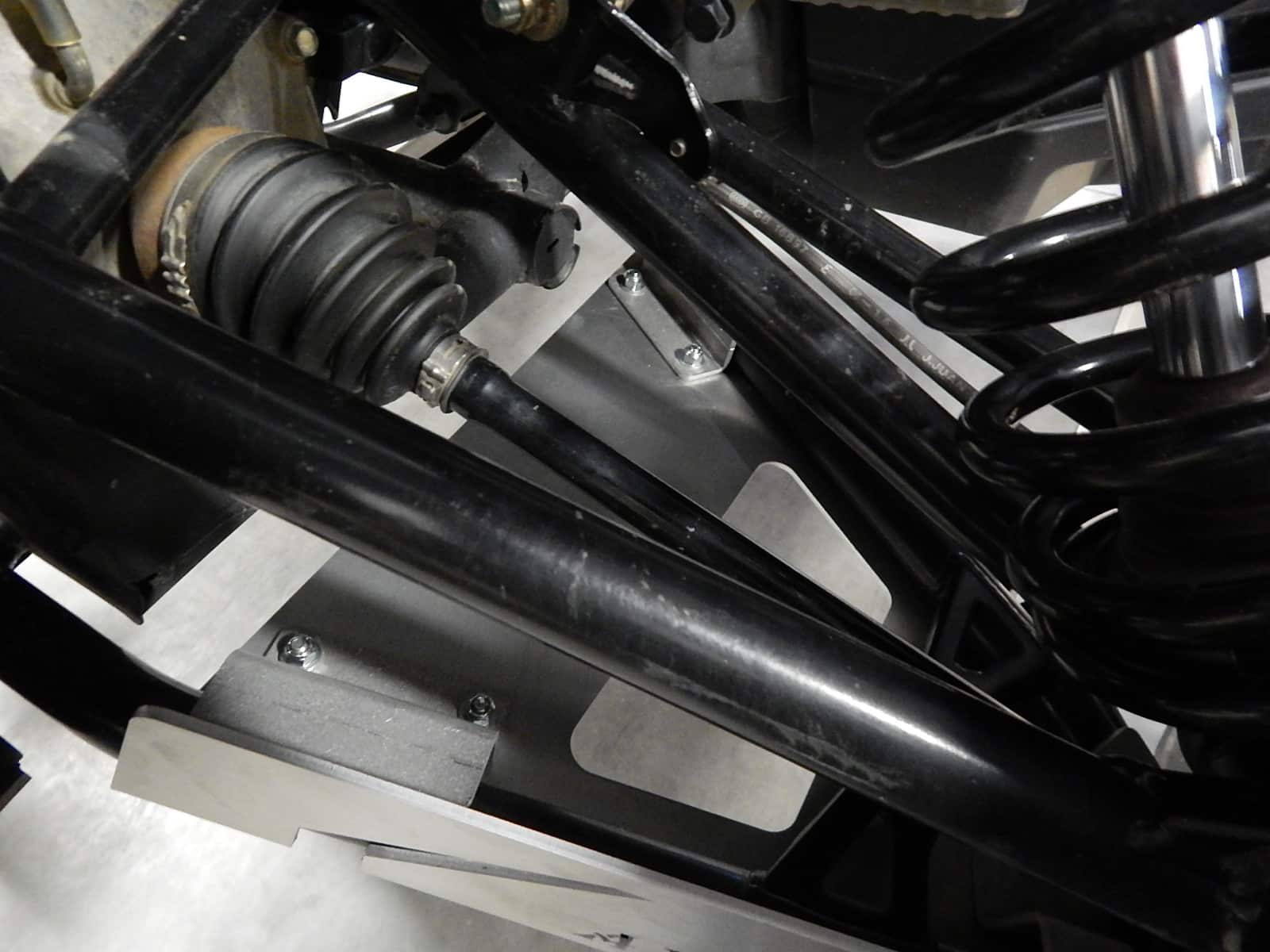 These great looking guards are made from .160 (5/32”) thick aluminum and feature our signature brushed finish. They protect your A-arms and CV boots from damage caused by logs, rocks, stumps and more. Drainage holes prevent you from carrying excess mud and make cleanout easier. Square shouldered low profile bolts prevent heads from shearing off no matter how rough the trail gets. Easy installation with NO drilling or mods to your machine. All installation hardware included. Fits 64 Inch Wide MAVERICK X3/X3 MAX.