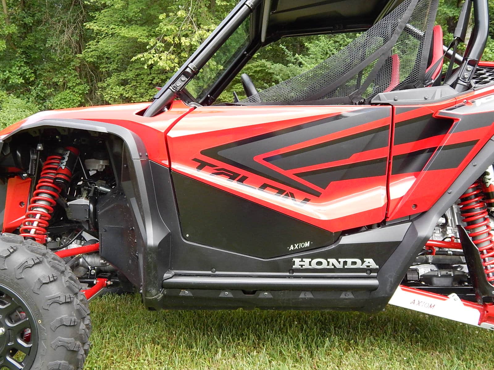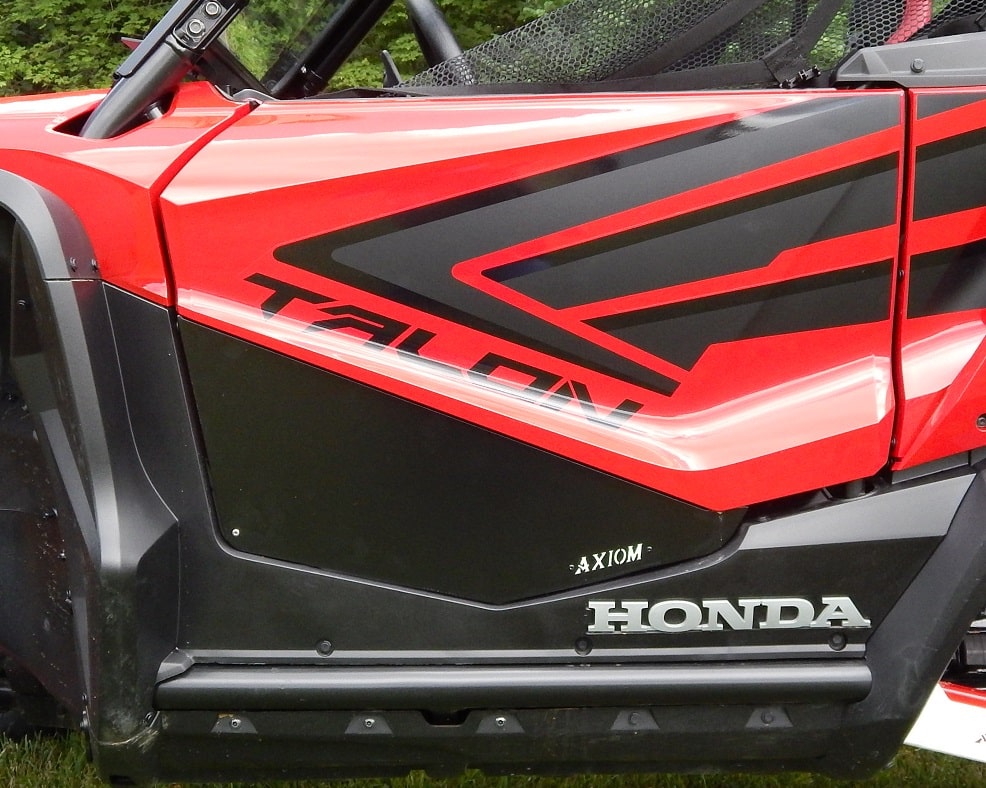 Enhance the style of your Talon and provide riders with greater comfort and safety by installing a set of Aluminum Door Lowers. They are made of .090 aluminum with a durable powder coat satin black finish. They are designed to be stronger and easier to install than our competitors. All hardware is included for a trouble free install.