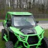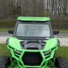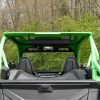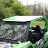 Our KRX roof is made from 1/8” aluminum and includes a durable powder coat finish. It features a one piece construction, formed side gutters to prevent dripping water and an integrated visor. Will not crack or fade like plastic roofs. It includes factory  installed cushioning gasket and all installation hardware. Available in Satin Black, Kawasaki Green and raw. Additional colors available on request.