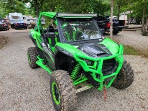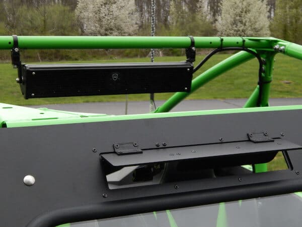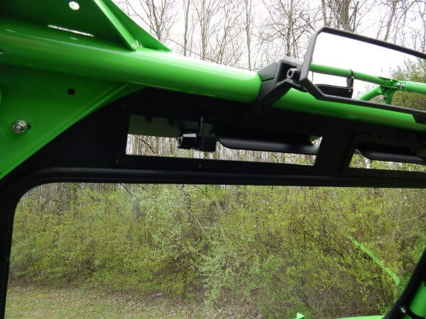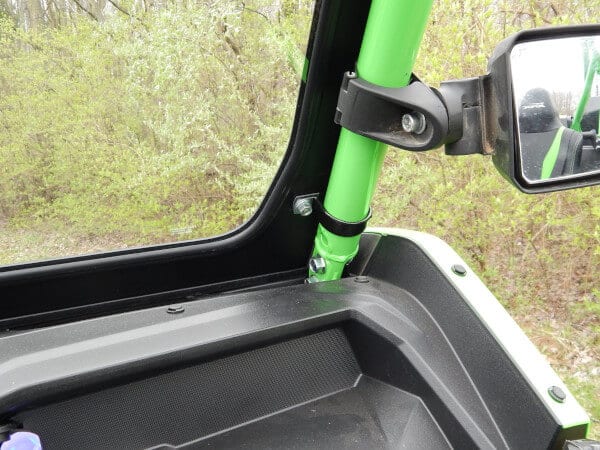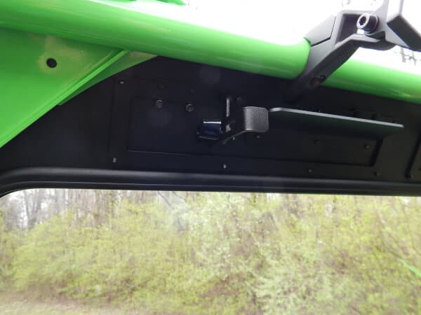 The Kawasaki KRX4 windshield made from 1/8″ Aluminum frame with 1/4″ thick DOT laminated safety glass. It installs in minutes with no drilling or mods to your machine. The windshield features two independently operated fully adjustable top mounted vents. It has a sealing bulb gasket at the bottom and cushioning gasket on all surfaces that make contact with cage. It also comes with durable black texture powder coat finish. All mounting hardware included.