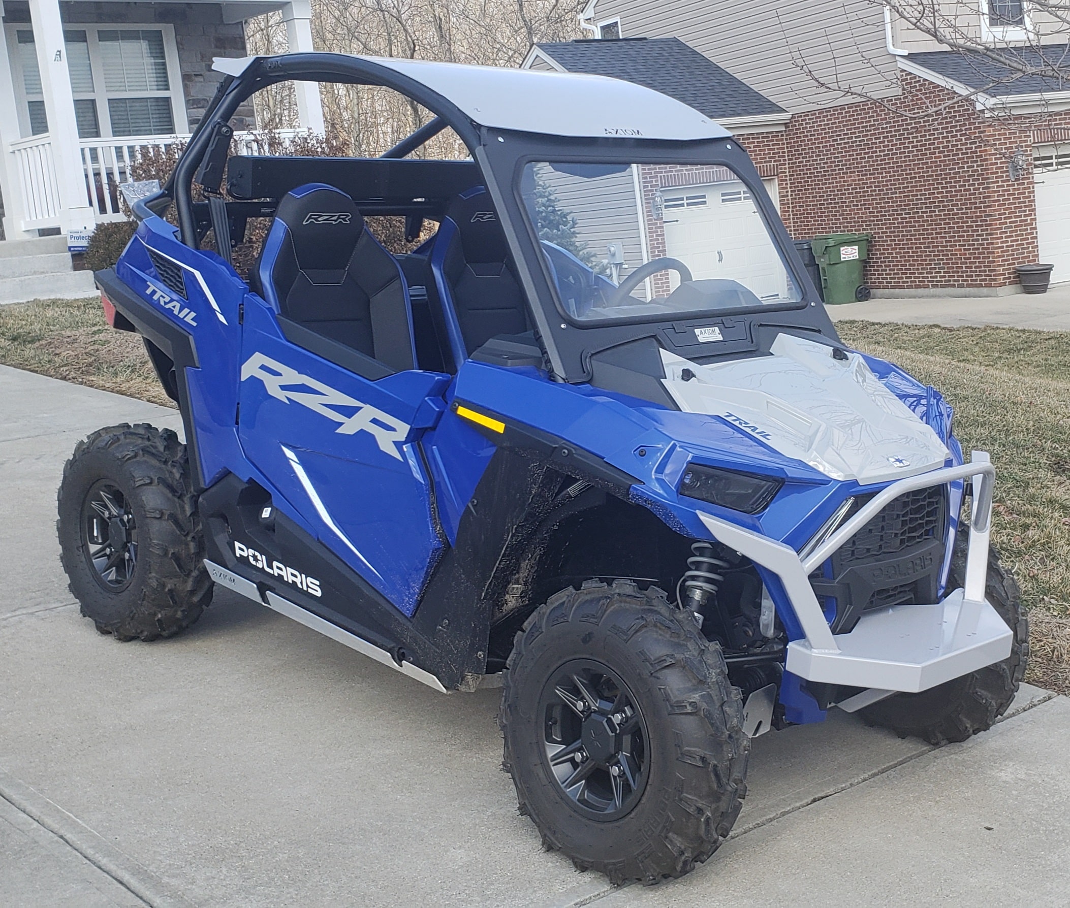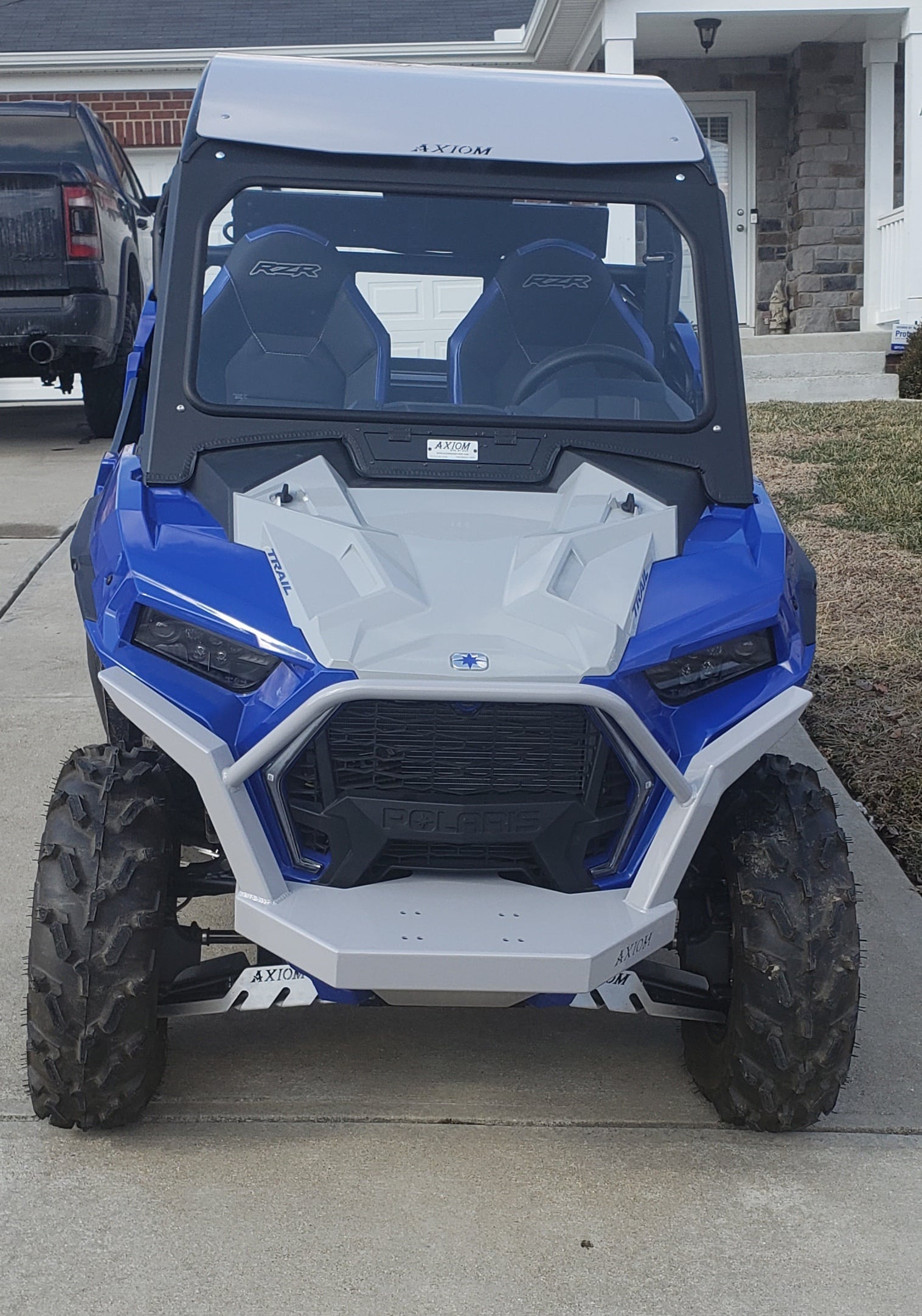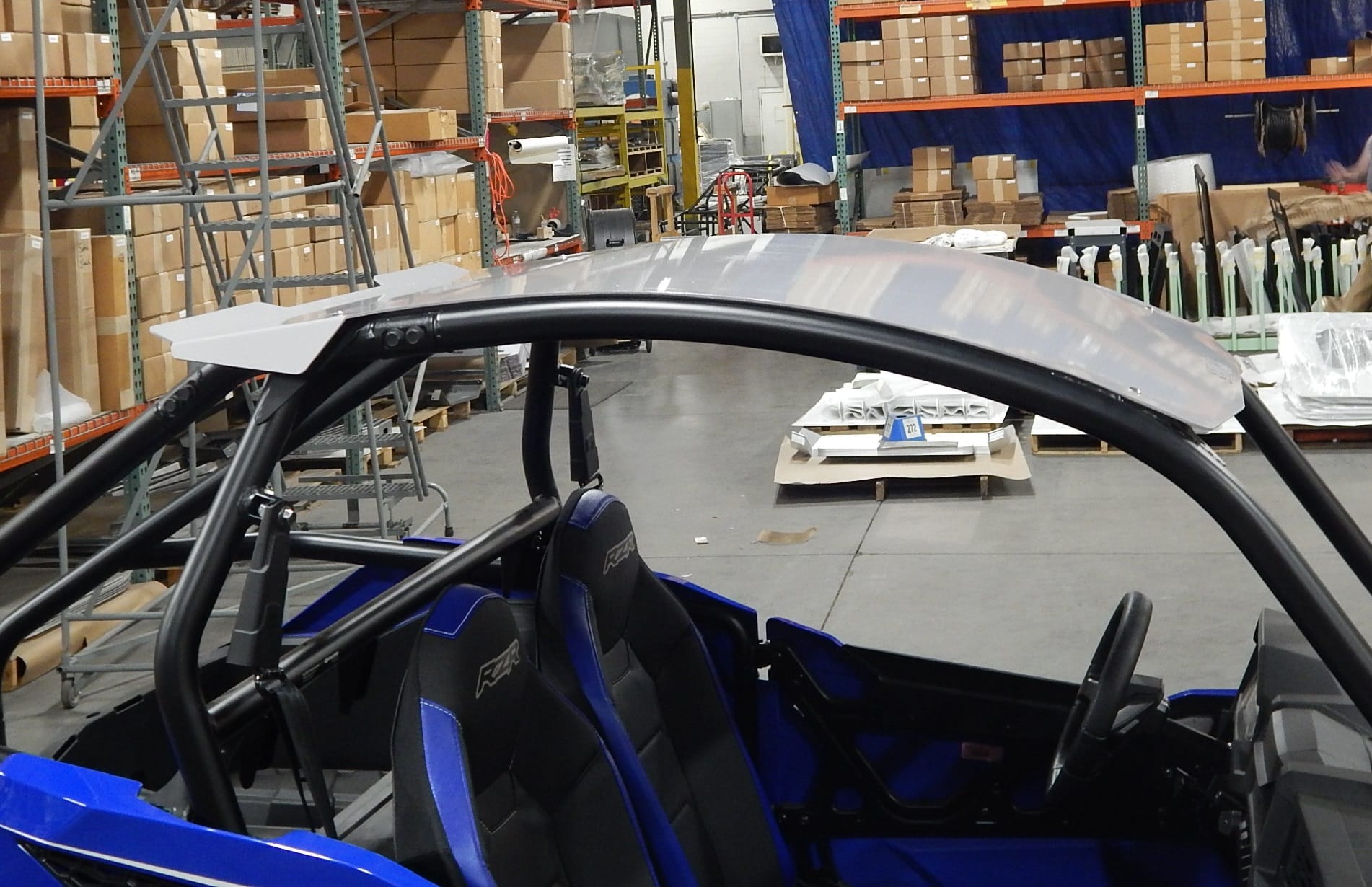 The AXIOM Side By Side roof is both stylish and functional. It features one-piece construction and is made of 1/8 aluminum, which is lightweight and durable. The roof has an integrated visor. Will not crack or fade like plastic roofs. Includes factory installed cushioning gasket and installation hardware. Installs in minutes with no drilling or mods to vehicle. Powder coat finish available in many standard colors including satin black, gloss white, blue, gray, light red, lime squeeze, and spectra orange. Also available in raw aluminum.