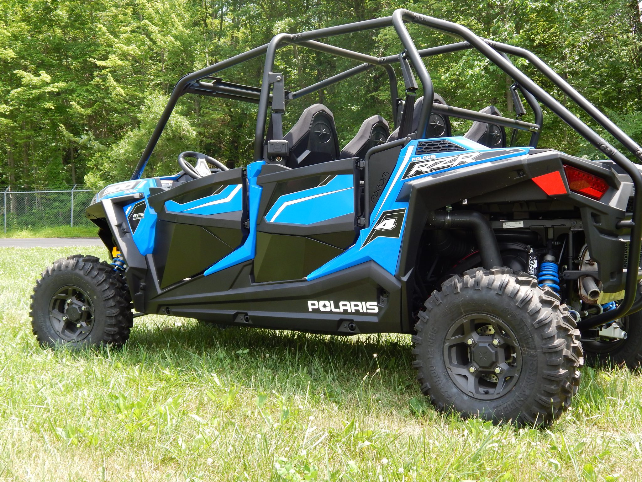 Enhance the style of your Polaris and provide riders with greater comfort and safety by installing a set of Aluminum Lower Half Doors. These doors attach quickly and securely to your stock door with no drilling or mods to your vehicle. .090 inch Aluminum construction is strong, durable, and provides the ultimate in style, fit, and finish. Triangular filler pieces are also included. The included hinge kit provides smoother door operation and prevents door rattling. Doors are powder coated matte black. All hardware included.