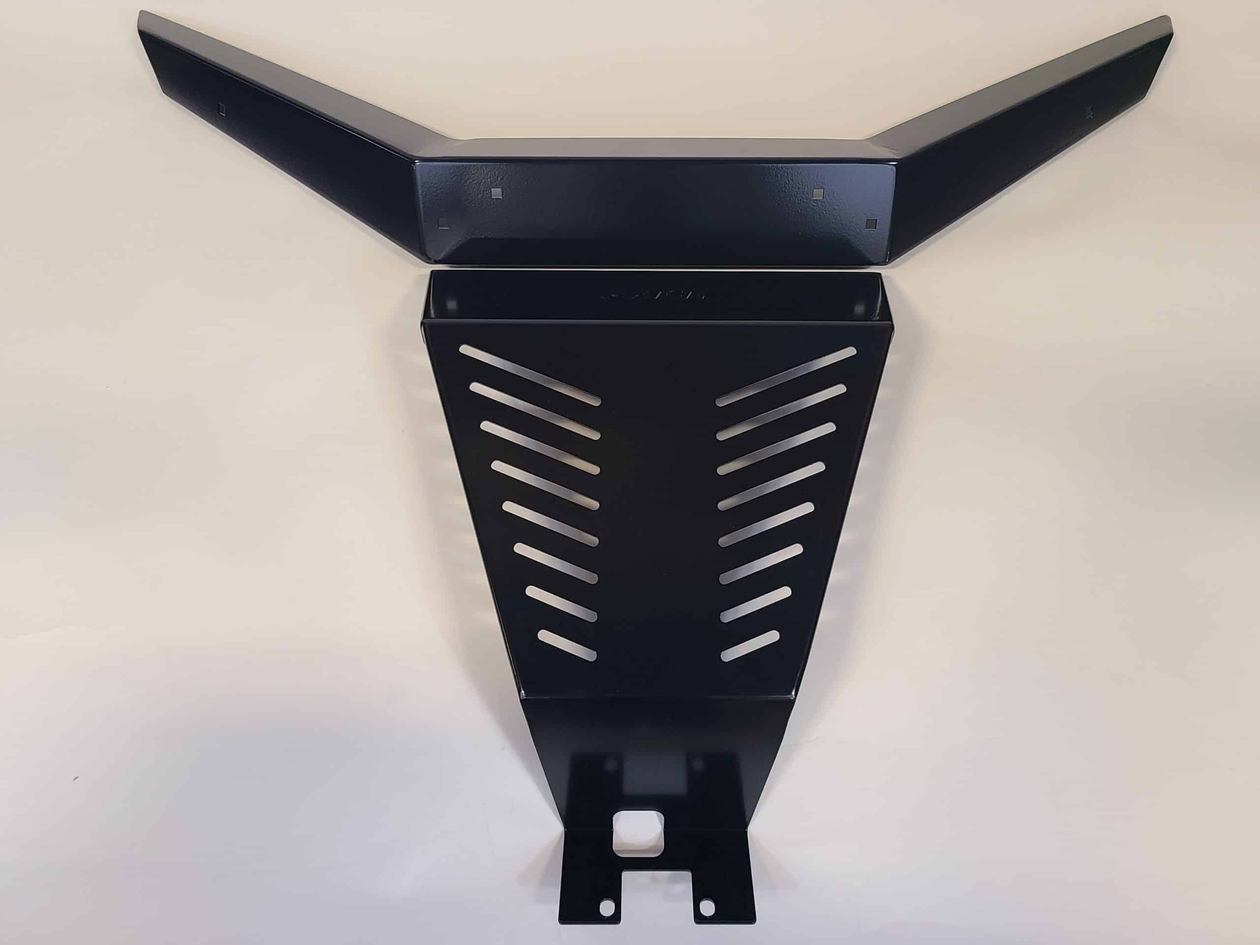 This rear bumper with lower panel provides protection and style. The sturdy mounting brackets are made from 7 ga (3/16”) steel and mount directly to the frame. The bumper and lower panel are made from 11 ga (1/8”) steel. This bumper will help prevent cracked plastic and tail lights should you back into a tree or get hit from behind by an over-aggressive driver. All components are laser cut and formed using CNC precision equipment. Easy bolt-on installation with NO DRILLING OR MODS TO YOUR VEHICLE. All hardware included. All components are powder coated in one of our standard colors, Satin Black, Gloss White, Voodoo Blue, Lt. Red, Spectra Orange or Lime Squeeze. Additional colors are available by request. Call us at 513-201-0749 for more info.