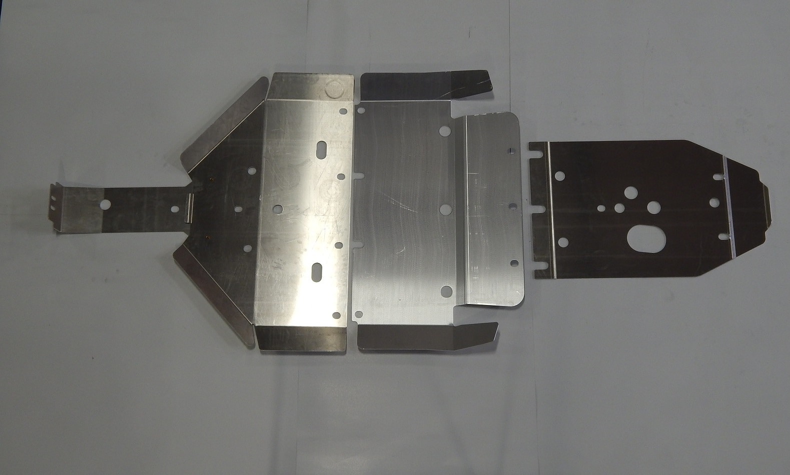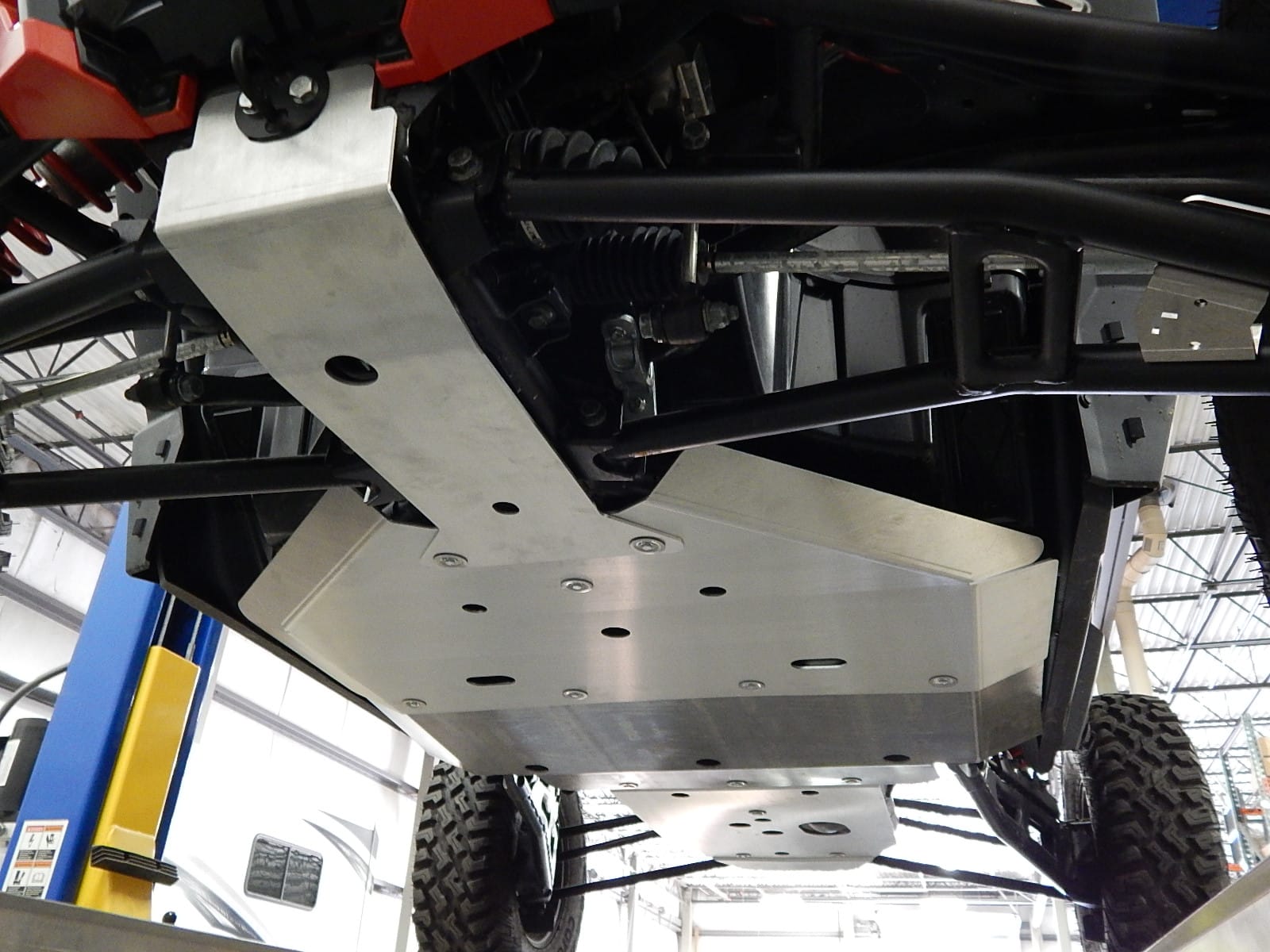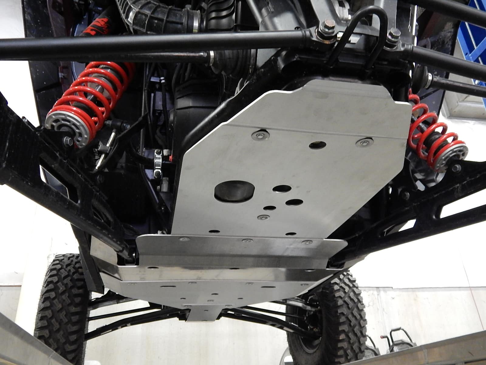 The XP TURBO S Skid Plates are made from .160 (5/32”) aluminum. They feature simple bolt-on installation with no drilling or modifications to your vehicle. Access holes are provided for maintenance and drainage. Mounting bolts are recessed with stainless steel skid plate washers to help prevent shearing off bolt heads. 4 piece overlapping plates. All hardware included.