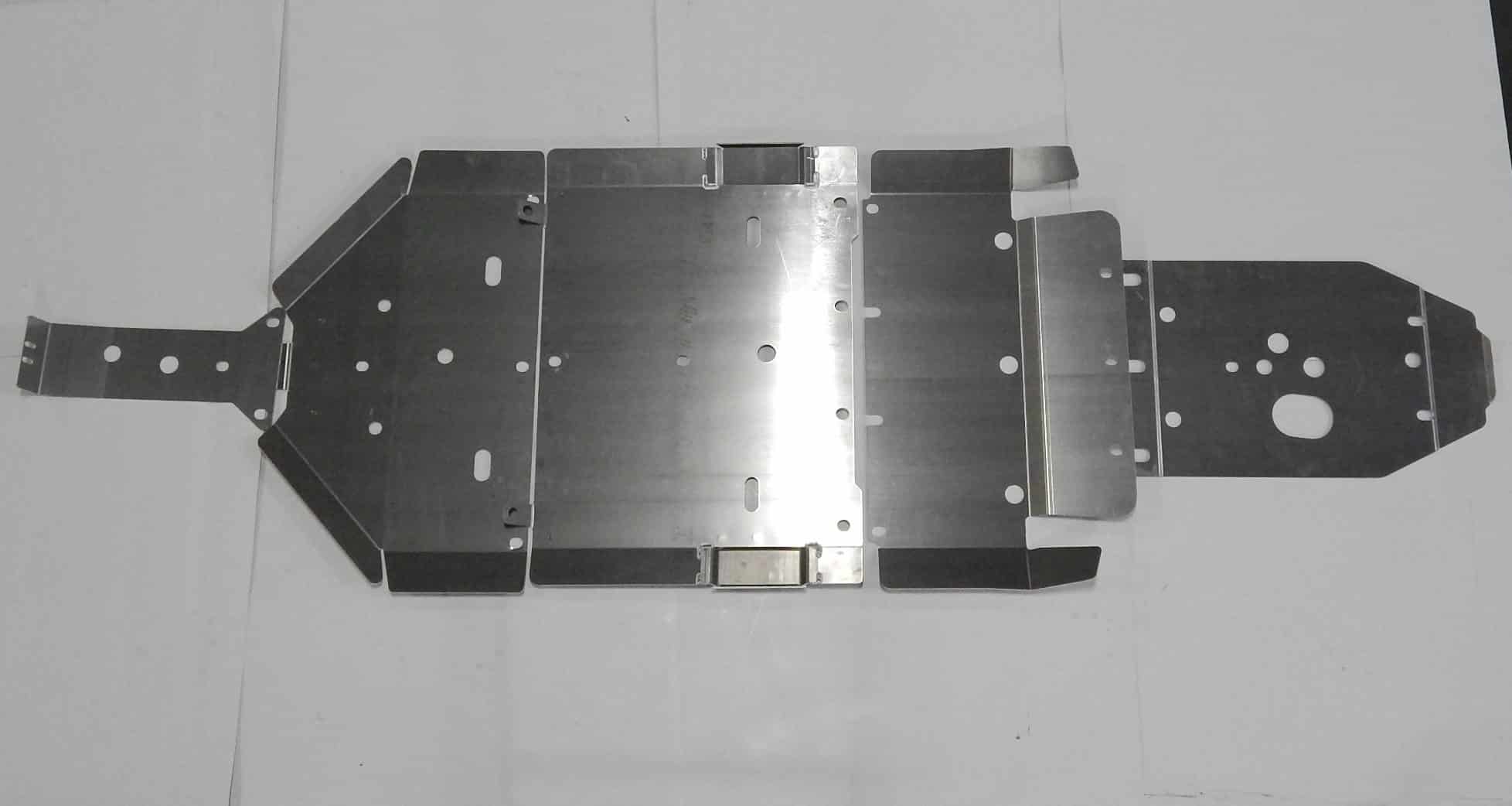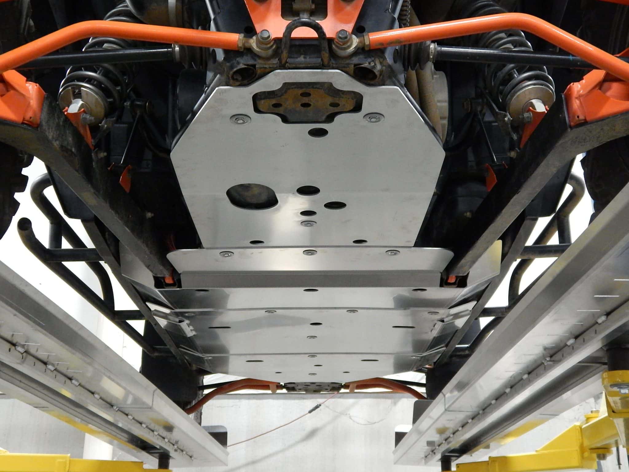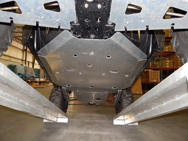 The XP4 Turbo Skid Plates are made from .160 (5/32”) aluminum. They feature simple bolt-on installation with no drilling or modifications to your vehicle. Access holes are provided for maintenance and drainage. Mounting bolts are recessed with stainless steel skid plate washers to help prevent shearing off bolt heads. 5 piece overlapping plates. All hardware included.