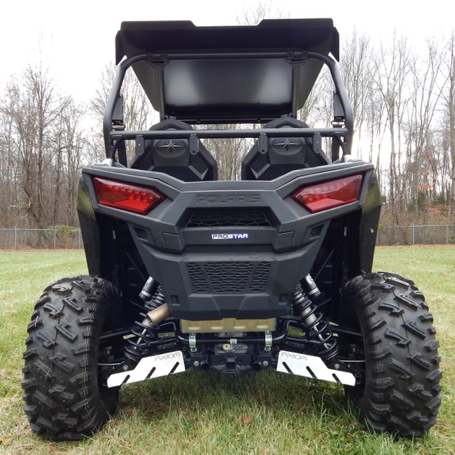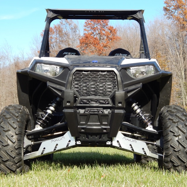 These great looking guards are made from .160 (5/32”) thick aluminum and feature our signature brushed finish. They protect your A-arms and CV boots from damage caused by logs, rocks, stumps and more. Drainage holes prevent you from carrying excess mud and make cleanout easier. Square shouldered low profile bolts prevent heads from shearing off no matter how rough the trail gets. Easy installation with NO drilling or mods to your machine. All installation hardware included.