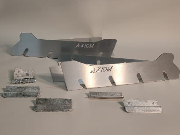 These great looking guards are made from .160 (5/32”) thick aluminum and feature our signature brushed finish. They protect your A-arms and CV boots from damage caused by logs, rocks, stumps and more. Drainage holes prevent you from carrying excess mud and make cleanout easier. Square shouldered low profile bolts prevent heads from shearing off no matter how rough the trail gets. Easy installation with NO drilling or mods to your machine. All installation hardware included.