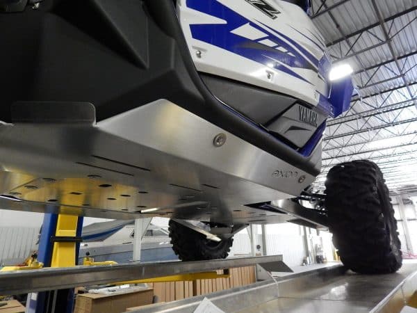 The YXZ 1000R Skid Plate is made from .160 (5/32”) aluminum. They feature simple bolt-on installation with no drilling or modifications to your vehicle. Access holes are provided for maintenance and drainage. Mounting bolts are recessed with stainless steel skid plate washers to help prevent shearing off bolt heads. Provides full coverage, front to back and the side pieces also provide rocker protection. Instructions and all mounting hardware included.